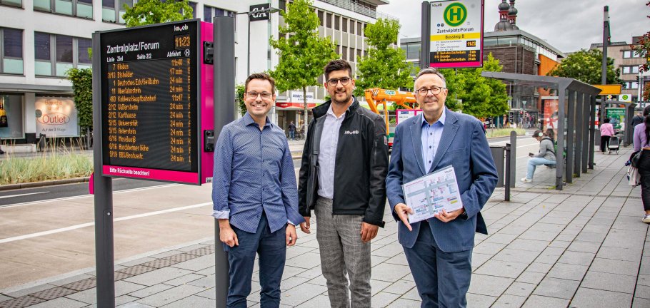 Nach dem Hauptbahnhof ist der Zentralplatz das zweite DFI-Großprojekt – aber nicht das einzige. „Insgesamt werden mit Projektende rund 120 Anzeiger an 60 Haltestellen in Betrieb sein“, erläutert Fachbereichsleiter Samet Ünal. „Dabei berücksichtigen wir natürlich auch die Verteilung in den Stadtteilen, soweit es die Infrastruktur durch den Energieversorger hergibt.“