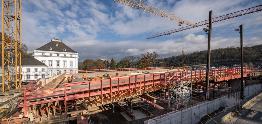 Neubau der Pfaffendorfer Brücke: Ein Jahr voller baureicher Tätigkeiten geht zu Ende