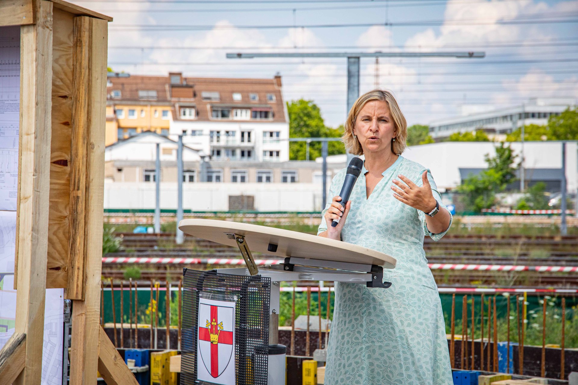 „Wenn wir mehr Menschen zum Umstieg auf den klimafreundlichen Schienenverkehr bewegen wollen, braucht es einen gut ausgebauten ÖPNV. Durch den Brückenneubau wird die Voraussetzung für den späteren Bau einer Bahnstation geschaffen, die Prognosen zufolge rund 3.300 Menschen pro Tag dazu bewegenkann, das Auto stehen zu lassen. Der neue Bahnhof wird also neben einem besseren Mobilitätsangebot für Pendlerinnen und Pendler mit mehreren Tausend vermiedenen Autofahrten täglich auch erheblich zum Klimaschutz beitragen“, sagte Mobilitätsministerin Katrin Eder anlässlich des Spatenstichs für das Neubauprojekt.
