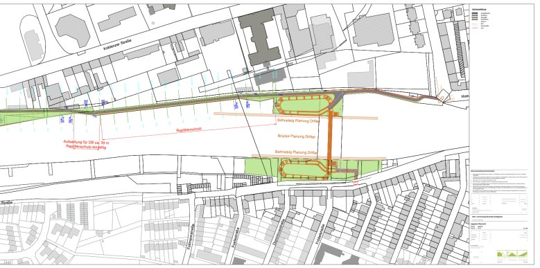 Seitens der DB-AG sind mittelfristig beidseitig der Gleise Bahnsteige für den öffentlichen Nahverkehr (neuer Schienenhaltepunkt Verwaltungszentrum) vorgesehen. Das geplante Geh- und Radwegnetz mit dem neuen Brückenbauwerk dient somit auch der Erschließung der neuen Bahnsteige.
