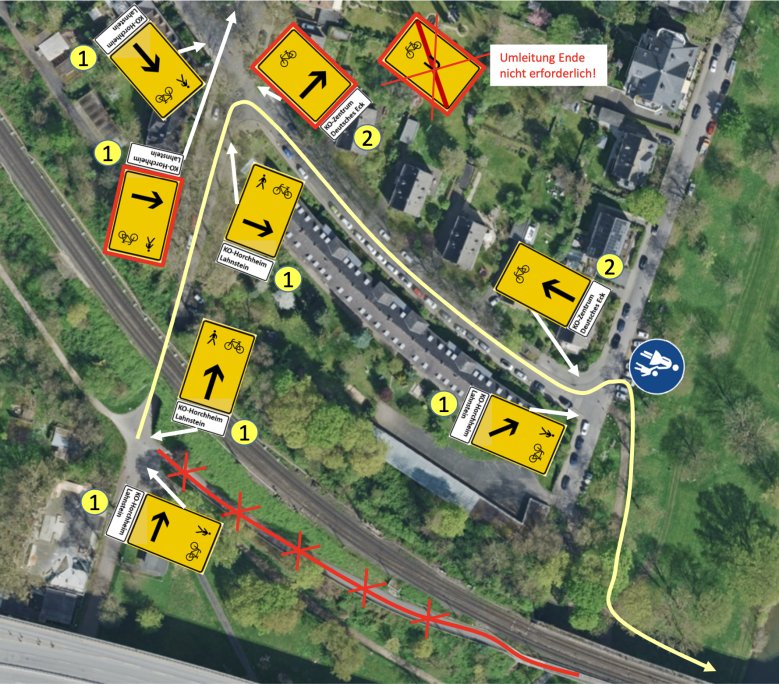 Da es sich um einen reinen Geh- und Radweg handelt, ist der motorisierte Verkehr nicht betroffen. Zusätzlich ist durch die Ertüchtigung der Behelfsbrücke die Verbindung zwischen Horchheim und Oberwerth rund um die Uhr bis Fertigstellung der neuen Oberstromseite gewährleistet.